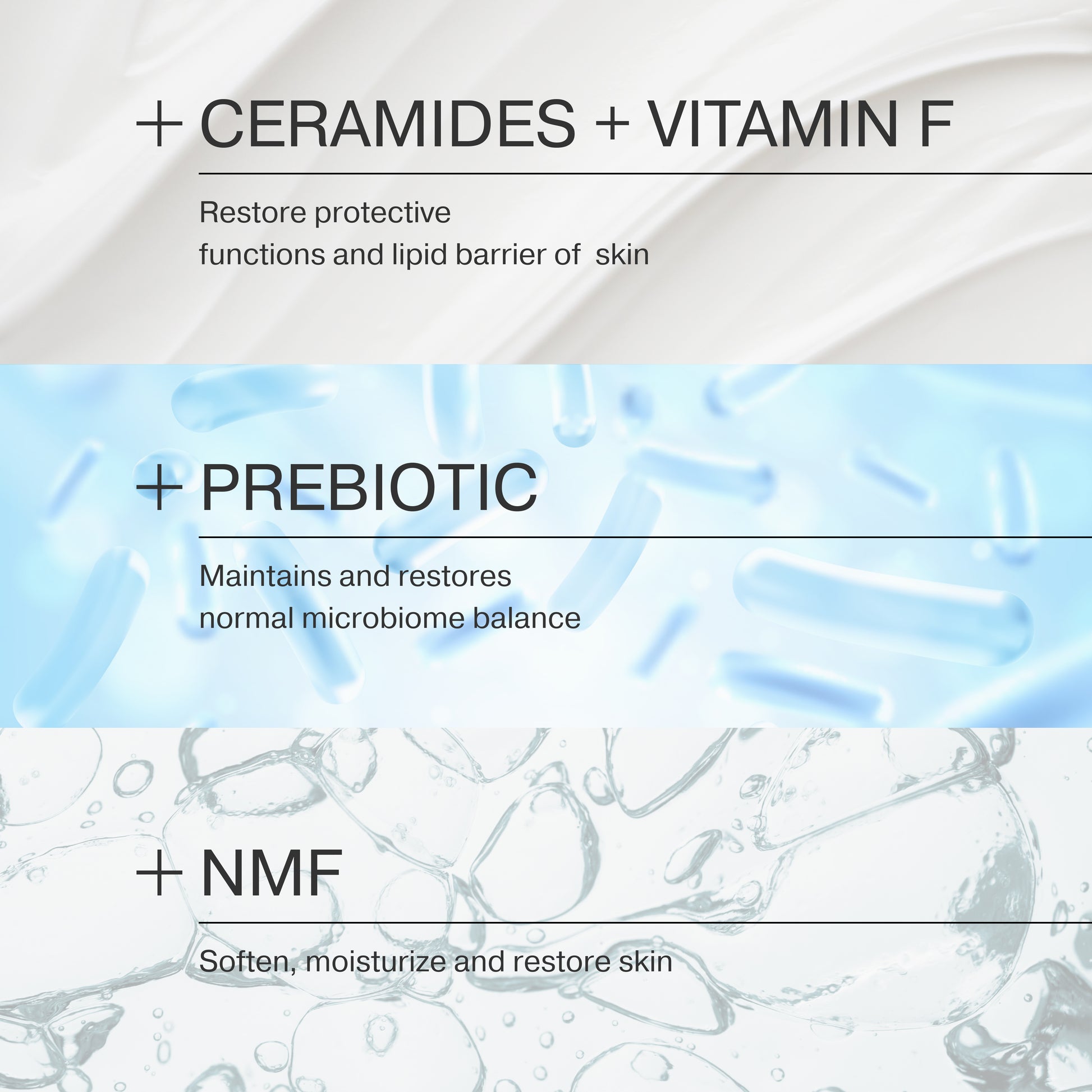 مُصمم خصيصًا للبشرة الجافة جدًا والحساسة في الوجه والجسم، المعرضة للتقشر والتهيج وردود الفعل التحسسية.