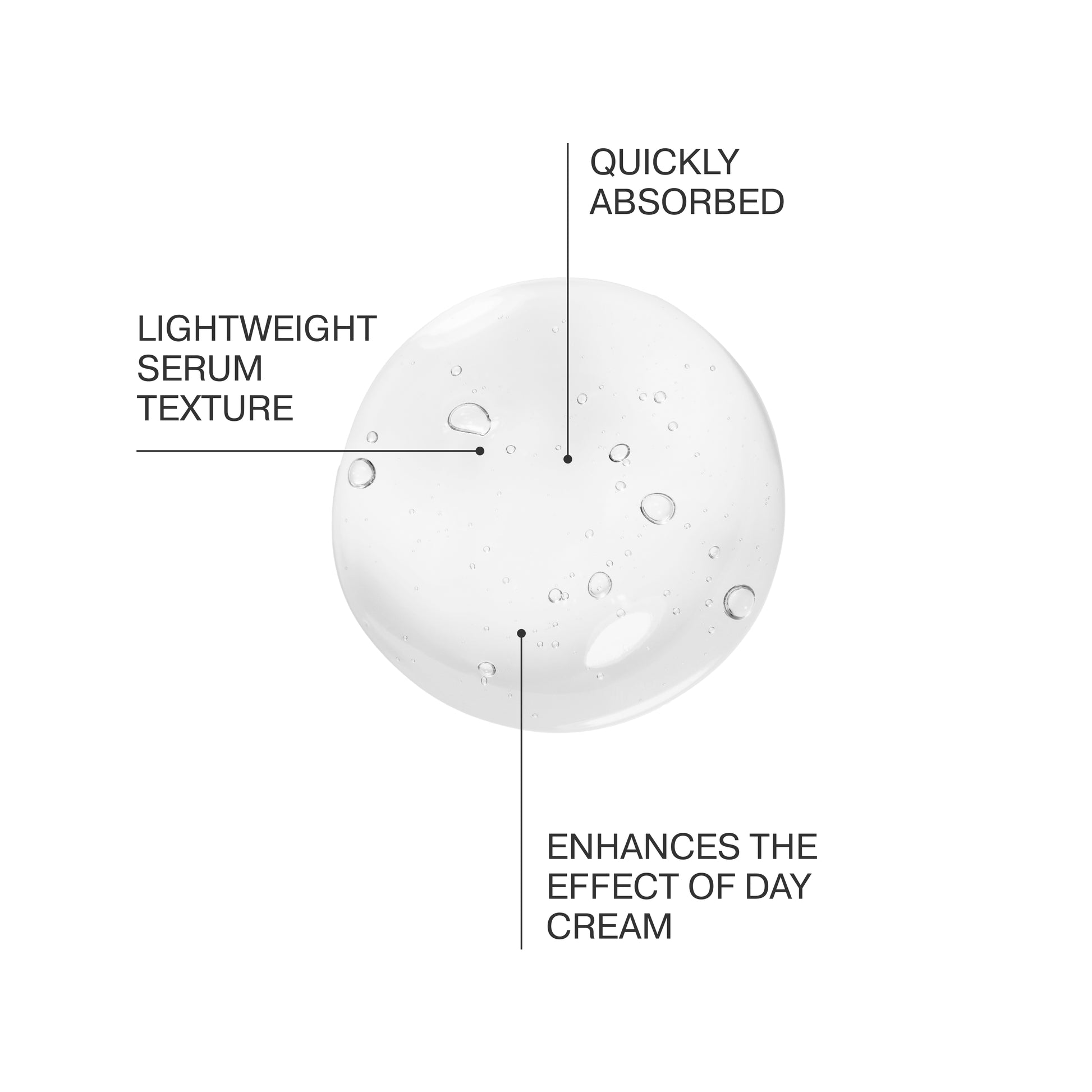 يتم امتصاص القوام الخفيف للمصل على الفور، مما يجهز البشرة لاستخدام كريم النهار.