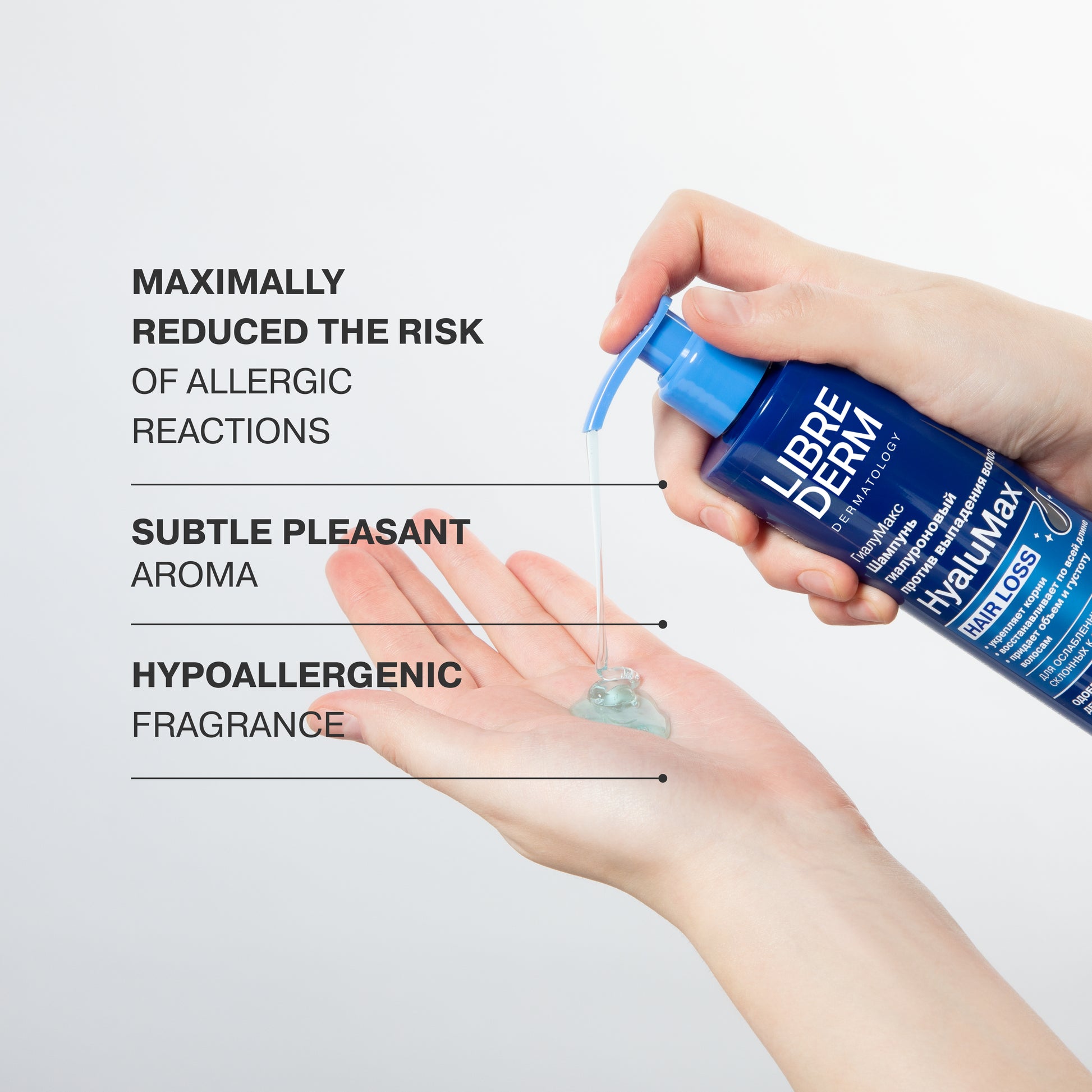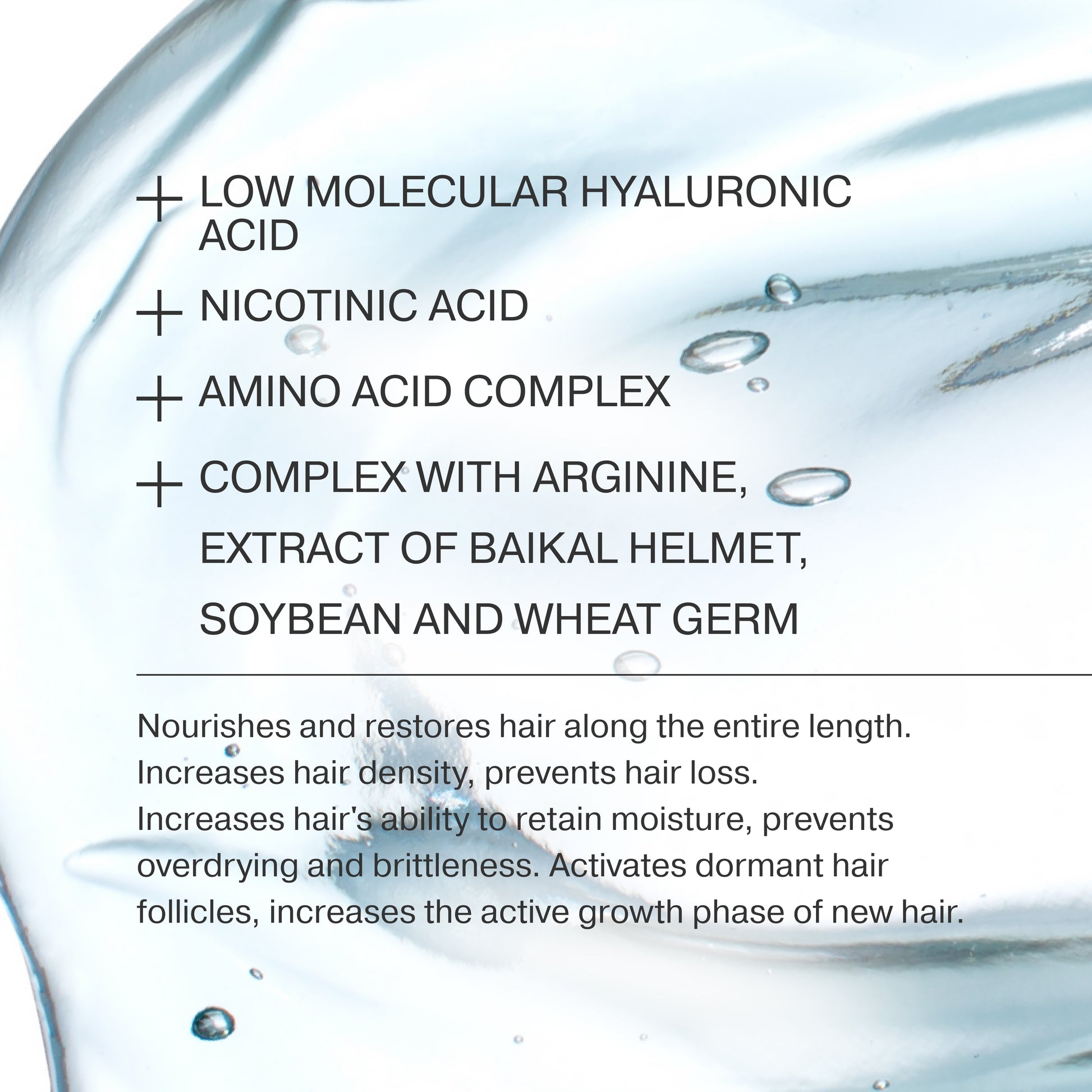 لتنظيف لطيف وشامل لجميع أنواع الشعر وفروة الرأس الحساسة أثناء تساقط الشعر وتباطؤ نموه وتدهور جودته، وعرضة للتأثيرات السلبية للعوامل الخارجية (التصفيف، الأشعة فوق البنفسجية، البرد، الرعاية غير السليمة)، وكذلك التغيرات الداخلية (الإجهاد، استخدام الأدوية، الأمراض الموسمية والفيروسية السابقة، التقلبات الهرمونية، النظام الغذائي).