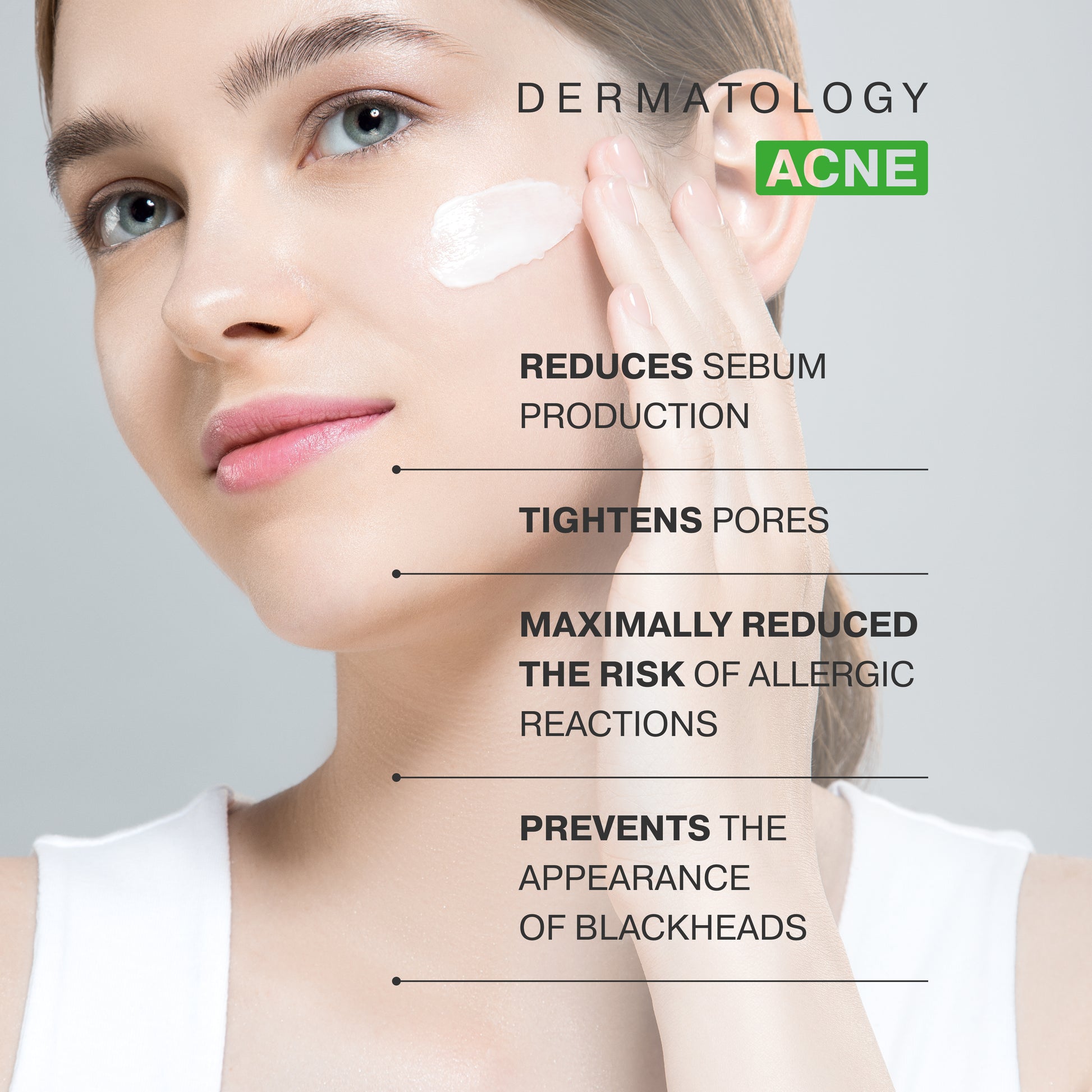 Регулирует выработку липидов сальными железами и, следовательно, помогает при угревой сыпи.